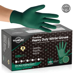 TitanFlex Heavy-Duty Nitrile Gloves are built for the jobs that ruin regular disposables. At 8 mil thick, they are 2–3 times thicker than standard nitrile gloves and deliver serious puncture resistance and barrier protection against pesticides, grease, gasoline, solvents, and more. When you need gloves that feel tough, not flimsy,...