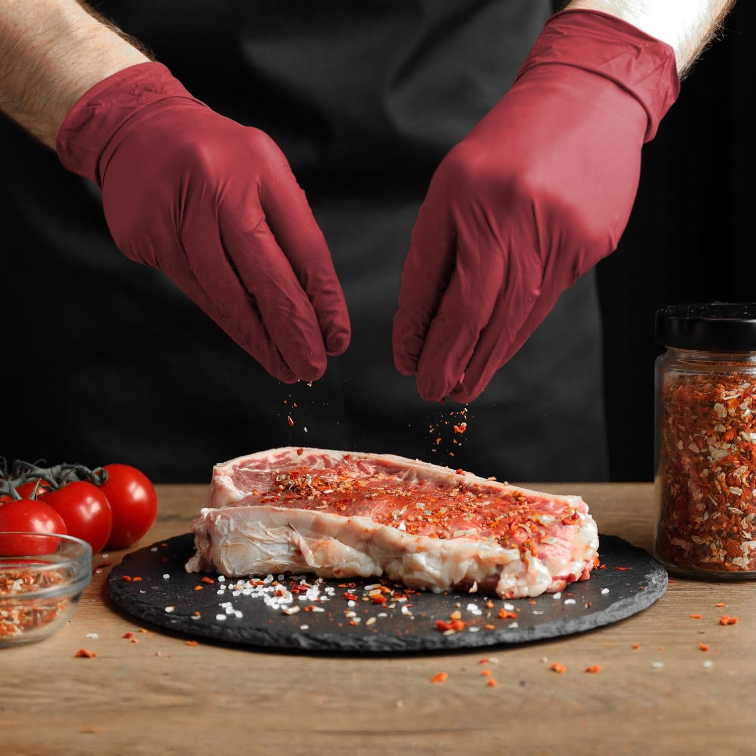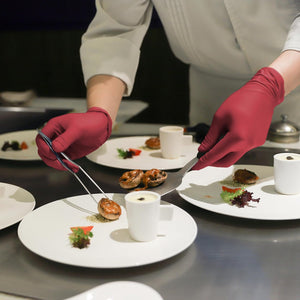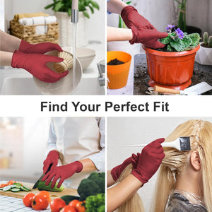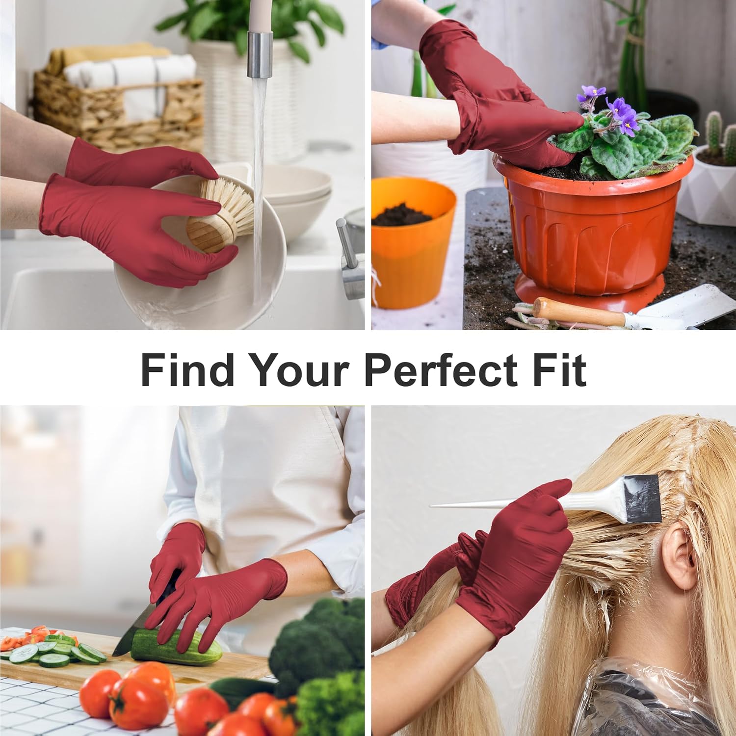 - Elegant Design with Comfort: Merging style with practicality, our burgundy gloves are popular among healthcare professionals and beauty experts. They cater to both men and women, offering a snug, stretchy fit in sizes from X-Small to X-Large.