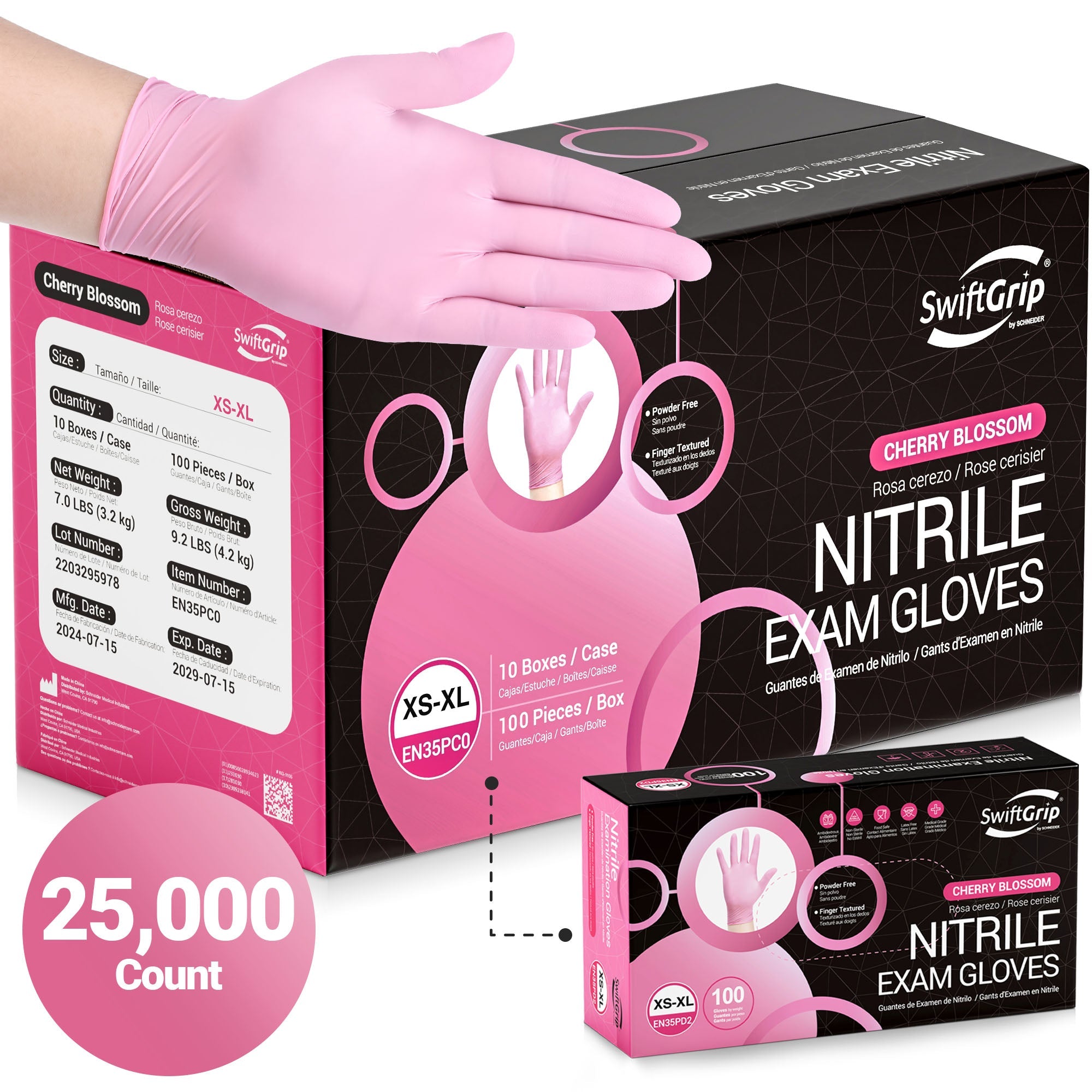 SwiftGrip Nitrile Gloves Cherry Blossom, 3mil, 25,000 Count - (EN35PD0-C)