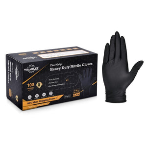 TitanFlex 8-mil premium industrial nitrile gloves are 2-3 times thicker than typical disposable nitrile exam gloves. They are remarkably durable and provide more puncture resistance and excellent barrier protection against grease, gasoline, and many other petroleum-based chemicals.