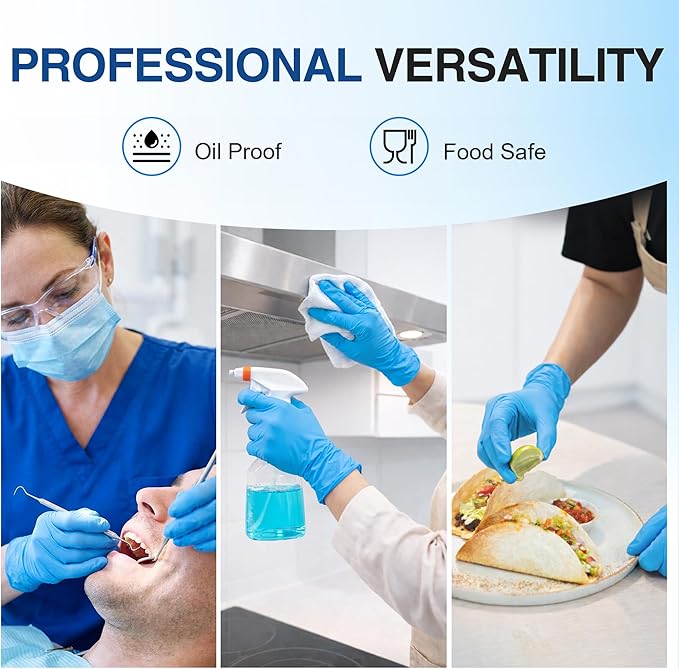 Medical Grade Exam Gloves: These 2.5 Mil medical-grade nitrile gloves provide reliable protection without the risks associated with latex gloves, making them ideal for medical exams, cleaning, lab, and other safety-critical tasksSafe & Allergen-Free: These latex-free, powder-free disposable gloves are suitable for sensitive skin and help prevent allergies associated with...