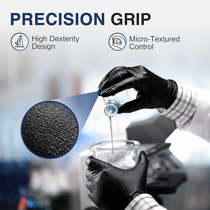 - Textured Fingertips – Better grip on tools, instruments, and small parts in wet or dry conditions.