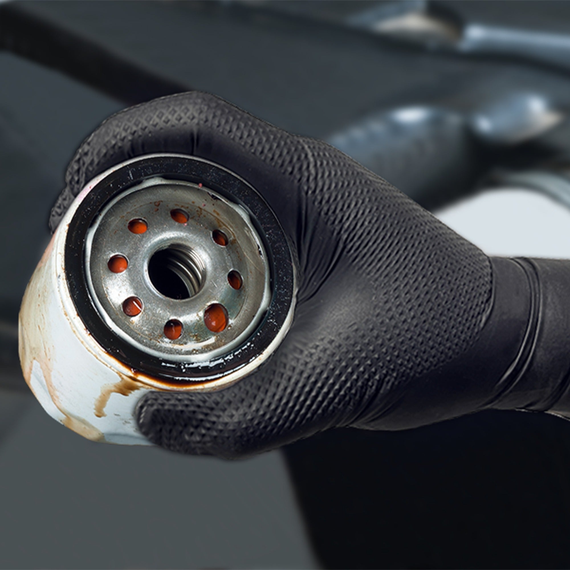 TitanFlex 8-mil premium industrial nitrile gloves are 2-3 times thicker than typical disposable nitrile exam gloves. They are remarkably durable and provide more puncture resistance and excellent barrier protection against grease, gasoline, and many other petroleum-based chemicals.