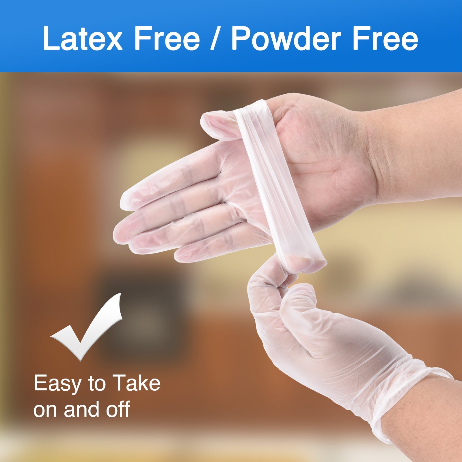 • LATEX-FREE GLOVES: Vinyl gloves contain no natural rubber latex, unlike latex gloves; these disposable hypoallergenic gloves are powder-free and protein-free too, safe for users with glove allergies or skin sensitivities.